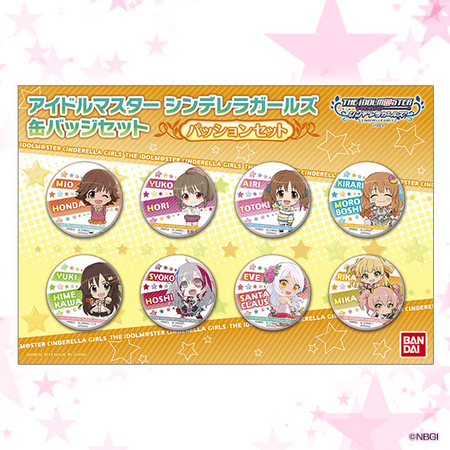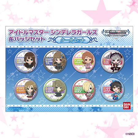 バンダイ公式ショッピングサイト「プレミアムバンダイ」(http://p-bandai.jp/?rt=pr)では、プレミアムバンダイ限定にて「アイドルマスター シンデレラガールズ 缶バッジセット 【キュートVer.】、【クールVer.】、【パッションVer.】」(各1,650円/税込・送料別)(http://p-bandai.jp/gashadepa/item-1000085192/?rt=pr)と、「アイドルマスター シンデレラガールズ 缶バッジ3種セット (特典:超豪華ホログラムビッグ缶バッジ付き)」(4,950円/税込・送料別)(http://p-bandai.jp/gashadepa/item-1000085191/?rt=pr)のご予約受付を2013年12月3日(火)11時より開始いたしました。ご予約受付は2014年1月7日(火)12時までで、商品のお届けは2014年3月を予定しています。
