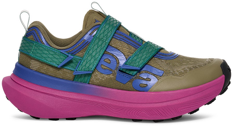 あらゆる地形で快適な走りをサポート。さらに、HYPER-COMFテクノロジーを採用したソールは、異なる硬度のミッドソールを 組み合わせ、究極のクッション性を発揮するスーパークリティカルフォームと、安定性を補うEVAミッドソールを融 合。加えて、内蔵されたナイロンプレートが推進力を安定させ、ねじれを補正。アウトソールにはTevaオリジナルのSPIDER RUBBER®を採用し、トレイルで優れたグリップ力を発揮します。
