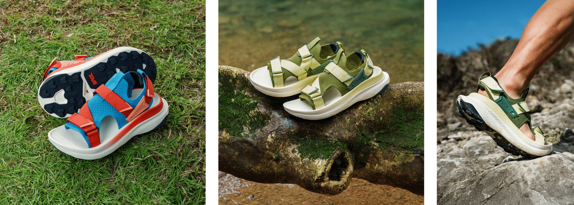 Tevaは1984年に米・グランドキャニオンで誕生。あるリバーガイドが 人々を案内するのに、トングのサンダルだと容易に脱げてしまうことに 困っていました。ある日、水辺でサンダルが脱げそうになったとき、彼は 即席でたまたま近くにあった時計の面ファスナーのベルトをトングの緒に 取り付け、サンダルが脱げにくいようにデザインしたことから、Tevaの サンダルは始まりました。新たに作るのではなく、「あるもの」で、まる でブリコラージュ的に作られたのがTevaのサンダルです。 「Teva」はヘブライ語で「Nature(自然)」。川岸から生まれたという ブランド起源や、自然という意味を持つブランド名から分かるように、ア ウトドアをルーツに持つTevaにとって自然や環境保全は縁が深いです。