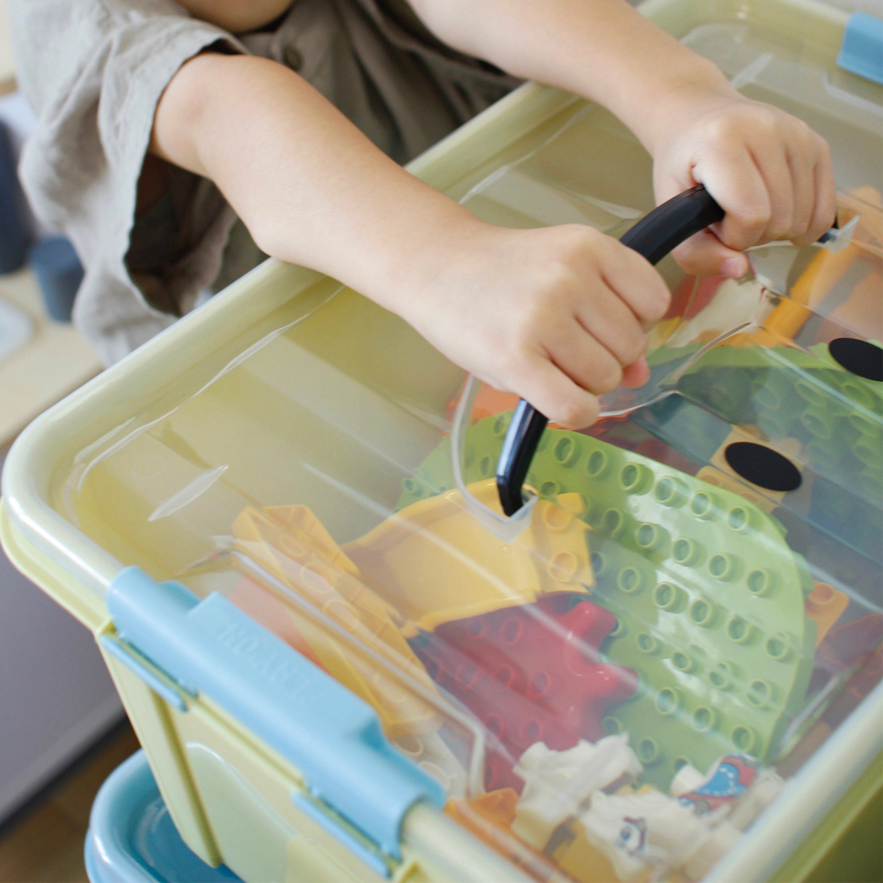 今回新たに採用した透明のフタは、中身が一目で分かり、必要なものを迅速に見つけることができます。忙しい朝、お子様のおもちゃや衣類を探すのが簡単になります。