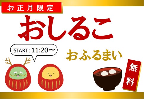 1月2日 (木)、1月3日 (金)の2日間限定で、1階フードコートにて、おしるこのおふるまいを行います。
