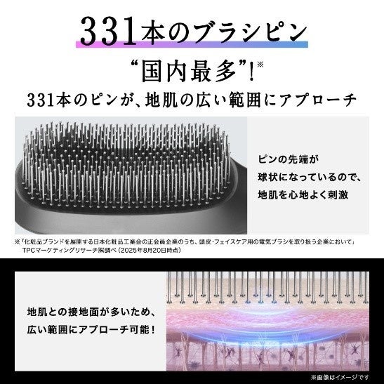 自宅でもサロン帰りのような状態を叶えたいという想いから、国内最多※1331本のピンという仕様にこだわりました。331本のピンから流れる独自リズムのEMSにより、地肌全体を効率よく収縮させて引き締める効果を実現しています。