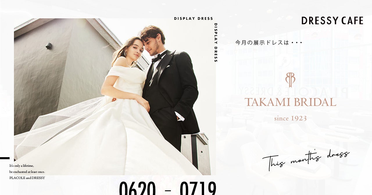 【DRESSY CAFE NAGOYA】6・7月のディスプレイドレスは「TAKAMI BRIDAL」のウェディングドレスを期間限定でお届けいたします。