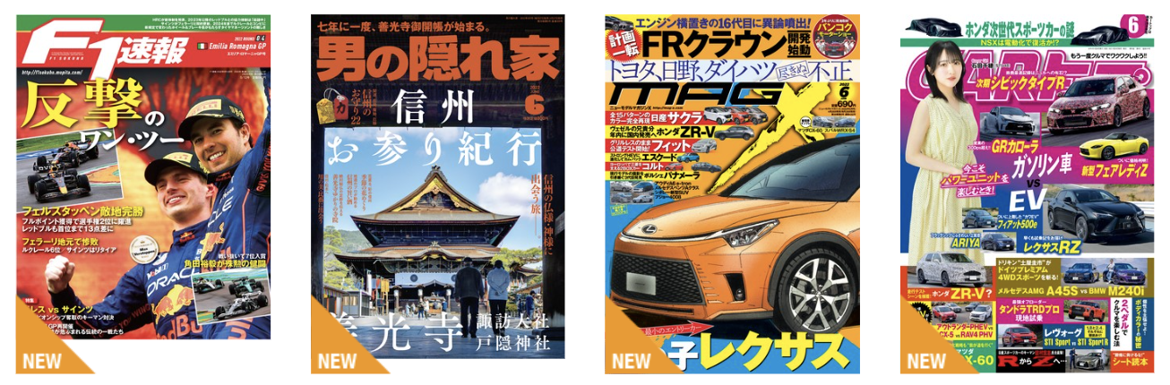 <GW特別企画>新車購入ガイド「ニューモデル速報」、レース専門誌「オートスポーツ」、アウトドア・ファッション誌「GO OUT」など、趣味の雑誌(電子書籍)が全品20%OFFとなるセールを実施中!