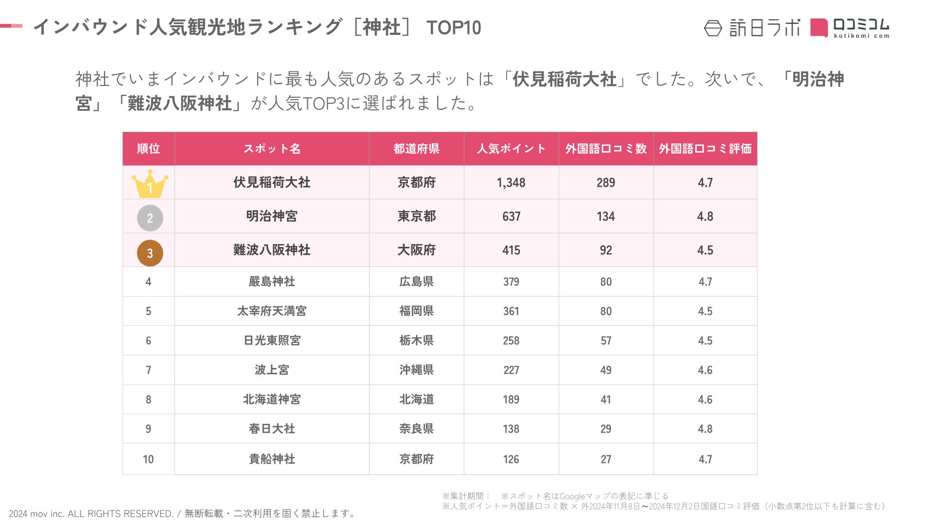 【独自調査】2024年最新:外国人に人気の観光スポットランキング[神社編]1位は「伏見稲荷大社」!| インバウンド人気観光地ランキング #インバウンド #MEO