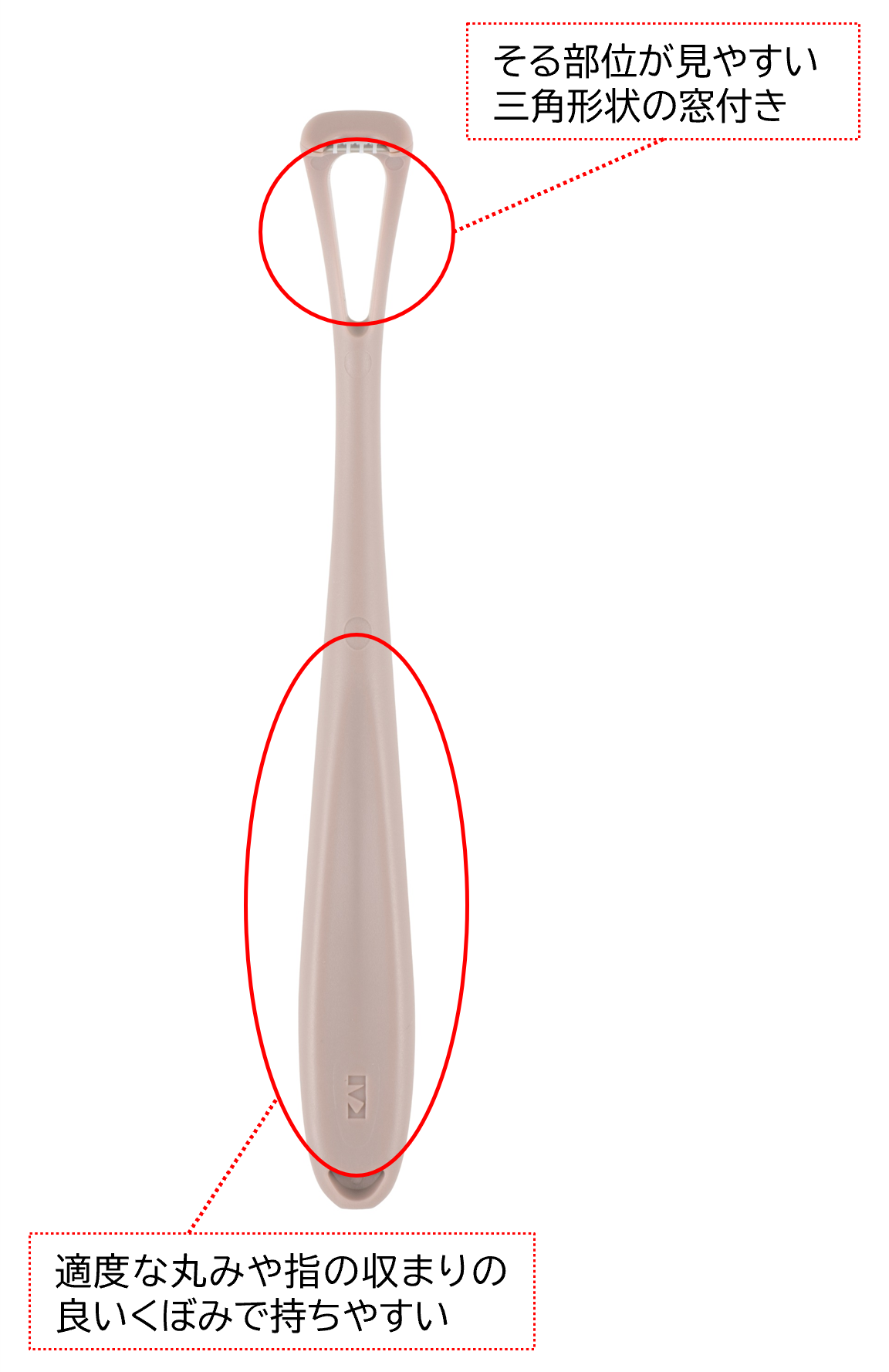 ・そる部位が見やすい三角形状の窓付きハンドルで視認性が高い