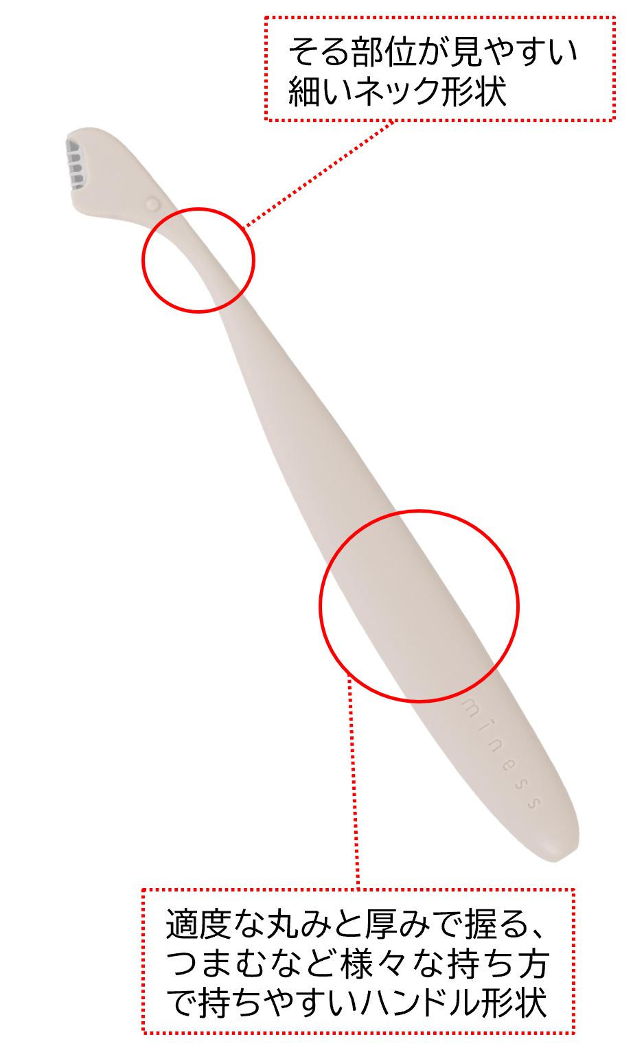 ・そる部位が見やすいネック形状とカミソリを持つ手が視界をさえぎりにくいヘッド角度で視認性が高い