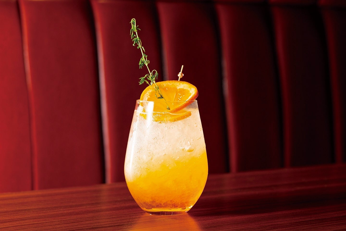 ジンベースにトニックウォーターでソーダアップした爽やかでフルーティーなキラキラカクテル。