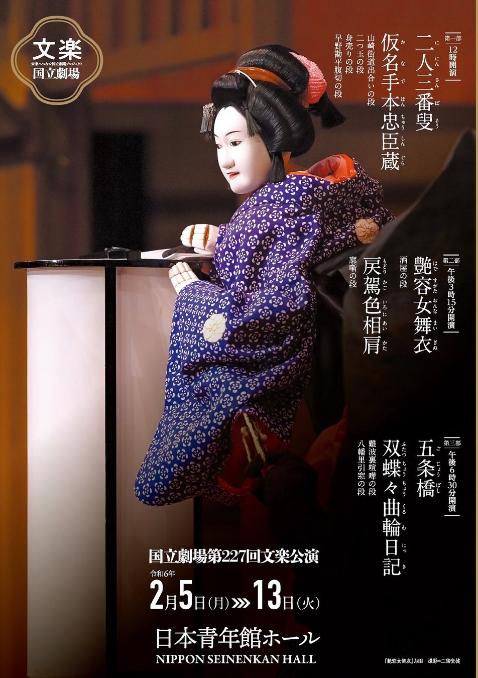 第2弾は、外苑前・日本青年館ホールにて2月文楽公演を行います。