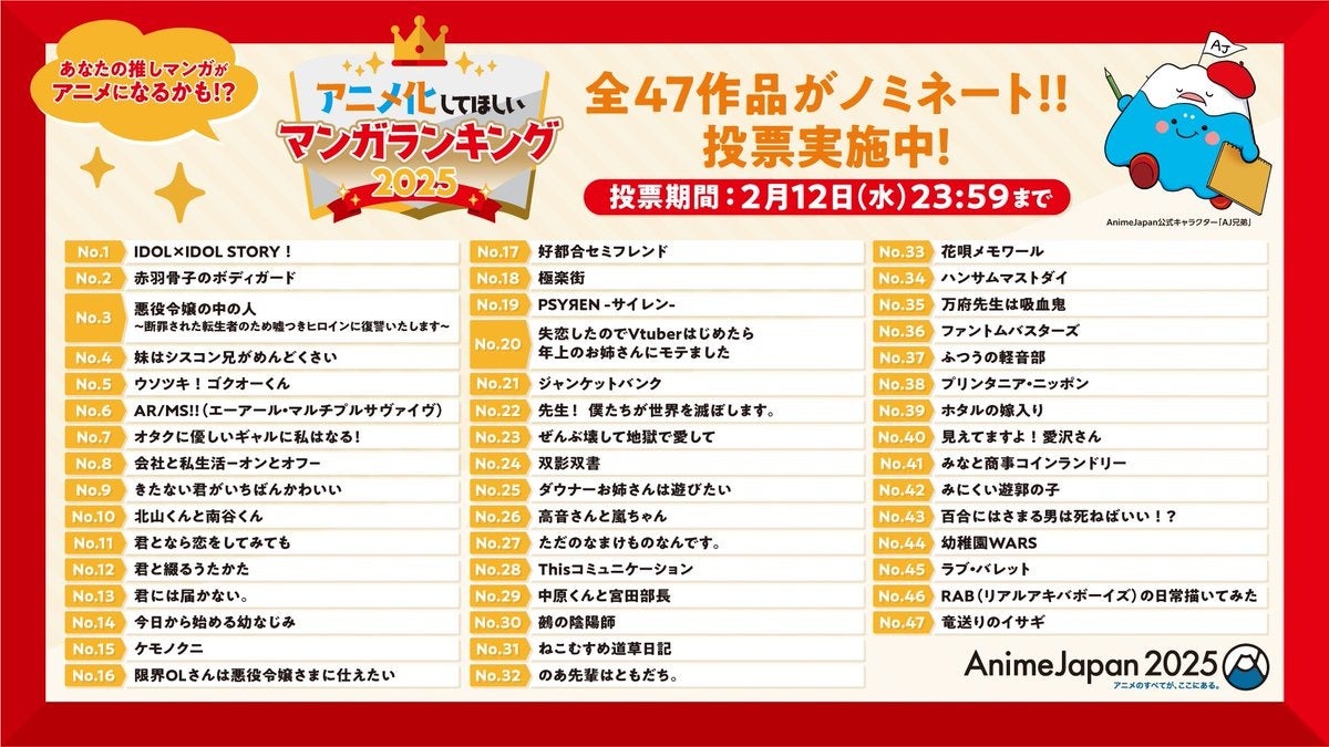 株式会社キルタイムコミュニケーション(東京都中央区)が発行するヴァルキリーコミックス『見えてますよ! 愛沢さん』(棘尾どろしー)がAnimeJapan「アニメ化してほしいマンガランキング2025」にノミネートされました。