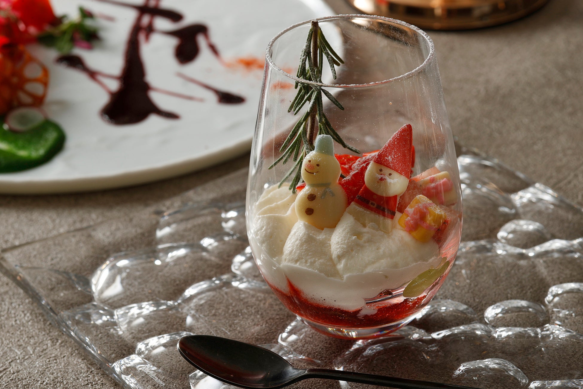 表参道のケヤキ並木の煌びやかなイルミネーションを間近に臨むCafe & Dining ZelkovAでは、赤と緑のコントラストが美しいクリスマスカラーの前菜から始まり、ソースがアーティスティックな仕上がりのスクエア型をしたチーズの焼きリゾットや、天使海老のスープドポワソン、トリュフ香るソースの国産牛サーロイングリルなど、贅沢かつ見た目も鮮やかな品々をお楽しみいただけます。デザートには愛らしいサンタクロースとスノーマンをとじ込めたシェフからのクリスマスプレゼントをお届けいたします。