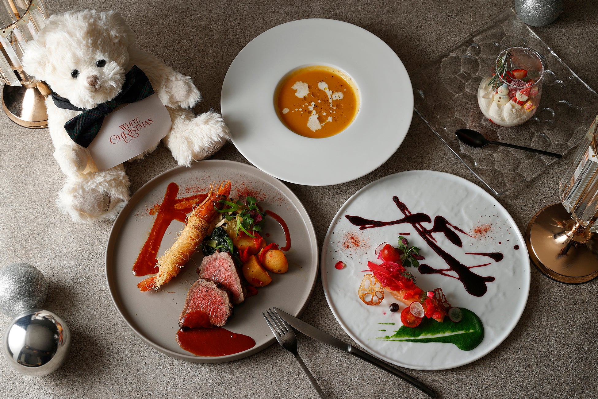 また、トリュフやキャビア、ポルチーニなど、クリスマスならではの高級食材を贅沢にとり入れたシェフ渾身の目にも美しい華やかなコースが、大切な方と過ごすクリスマスの特別な時間を演出いたします。