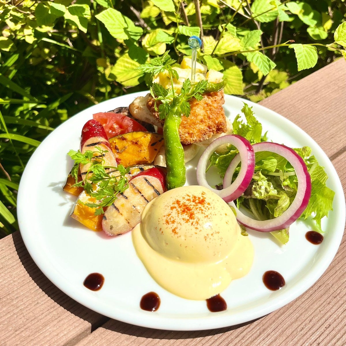 長野県産の新鮮な卵を使用したエッグベネディクト。期間限定メニューの「三河湾産真鯛のフライと秋野菜のエッグベネディクト」の他に定番の「チキン&ほうれん草ベネディクト」や「スモークサーモン&アボカドベネディクト」など種類豊富にご用意しております。