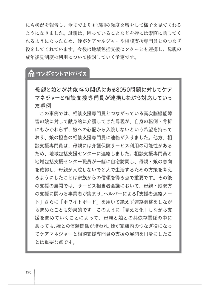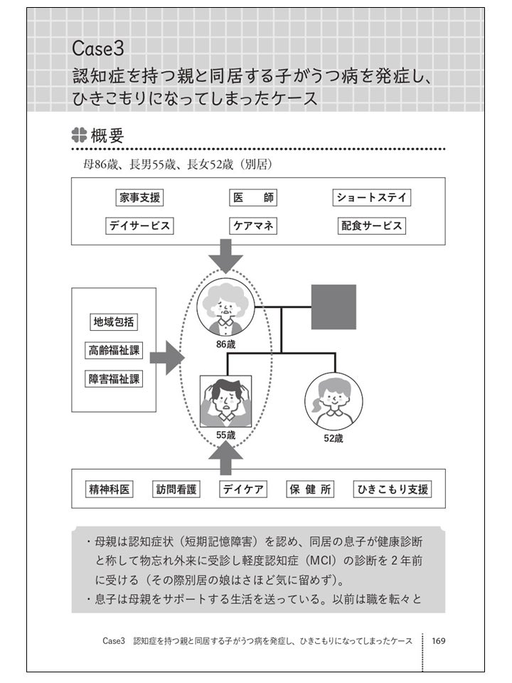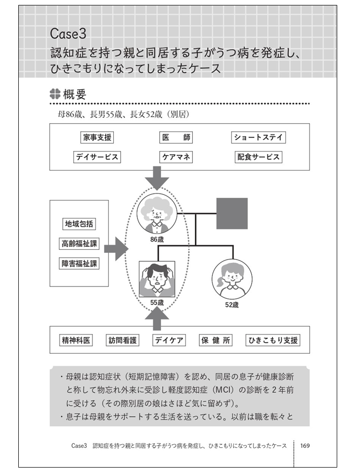 「ケーススタディ編」では「8050問題」の家庭の支援を併発する問題別に取り上げ、具体的な支援の流れを説明しています。