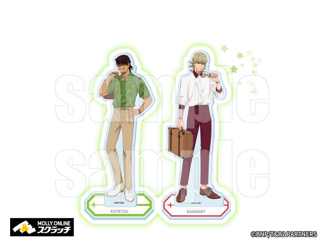 鏑木・T・虎徹、バーナビー・ブルックス Jr.がバケーションスタイルになった描き下ろしイラストをあしらった、高さ約15cmのビッグなアクリルスタンド。虎徹、バーナビーとお出かけ気分になれるアイテムです。