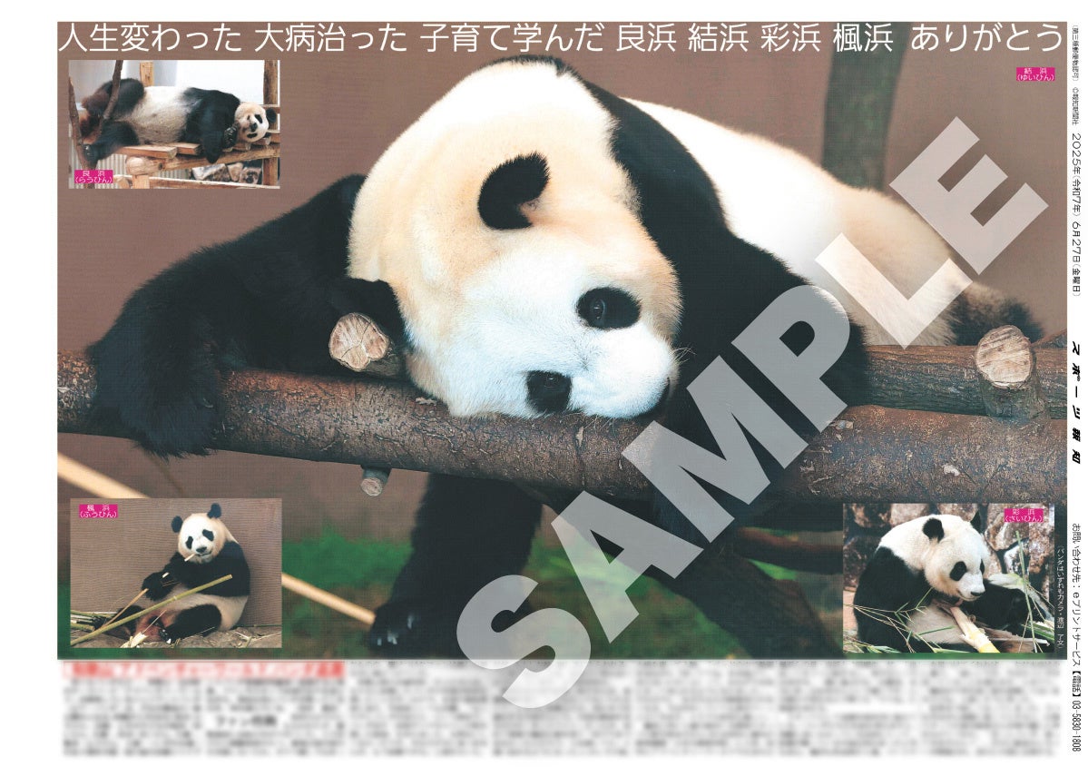 スポーツ報知を発行する報知新聞社(代表取締役社長・長谷川剛)は新聞の一部紙面をコンビニエンスストアのマルチコピー機からプリントできる「スポーツ報知コンビニプリント」サービスをスタート。スポーツ紙ならではの大きな写真を使った紙面をプリント版として販売しています。6月27日付紙面から和歌山・アドベンチャーワールドから中国へ帰国したジャイアントパンダの良浜、結浜、彩浜、楓浜4頭の様子を報じた紙面をお届けしています。