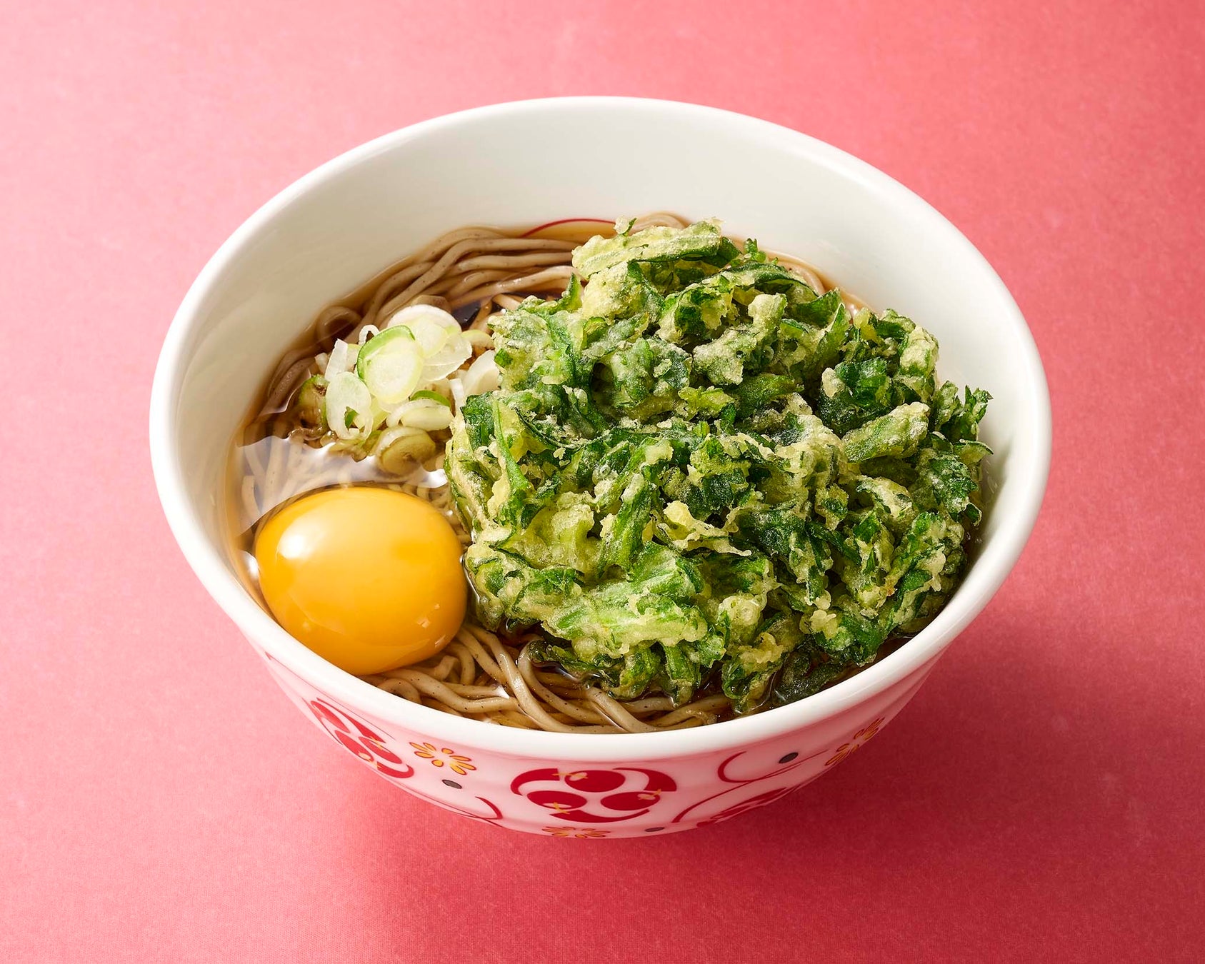 幅広い世代に選ばれるそば屋の「春菊天」を「生たまご」と掛け合わせた人気の商品です。