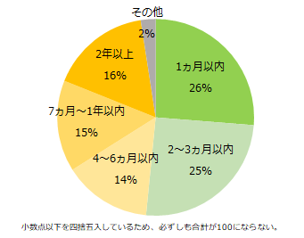 これまでにギャップが原因で仕事を辞めたことがある方に、退職したお仕事での入社から退職までの期間を伺うと、最多は「1ヵ月以内」で26%、次いで「2~3ヵ月以内」(25%)、「2年以上」(16%)が続きます。就業前後にギャップを感じた方は、入社3ヵ月以内の離職が多いことがわかりました。