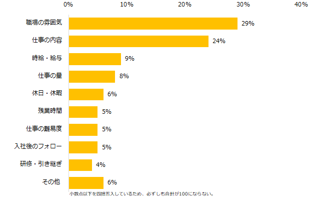 ★ 55%が、就業前後のギャップで「仕事を辞めたことがある」と回答。ギャップが原因で退職した方の理由、トップは「職場の雰囲気」。