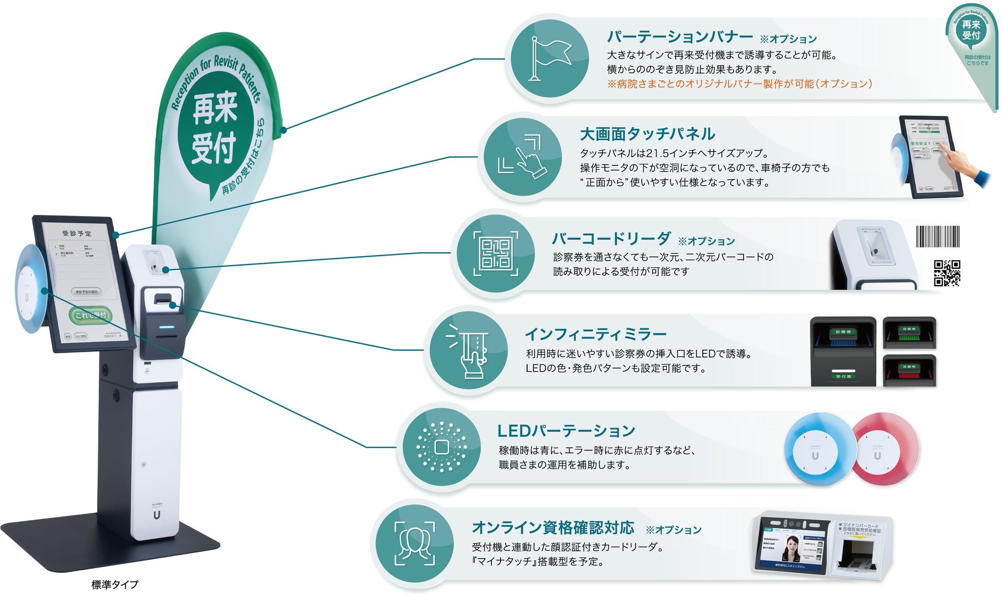 ・診察券挿入口にインフィニティーミラーを標準搭載し、スムーズな操作を誘導