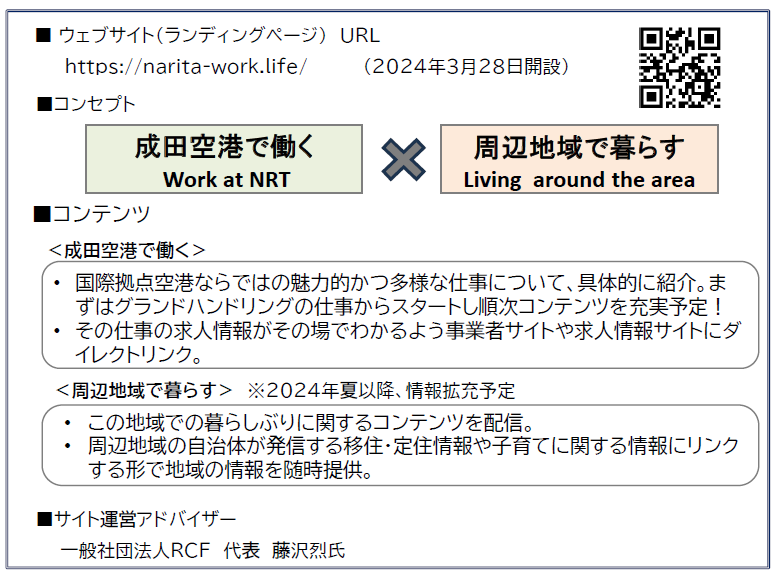成田国際空港株式会社は、成田空港で働き周辺地域で暮らすライフスタイルに関する情報を発信する統合ウェブサイトを2024年3月28日に開設します。
