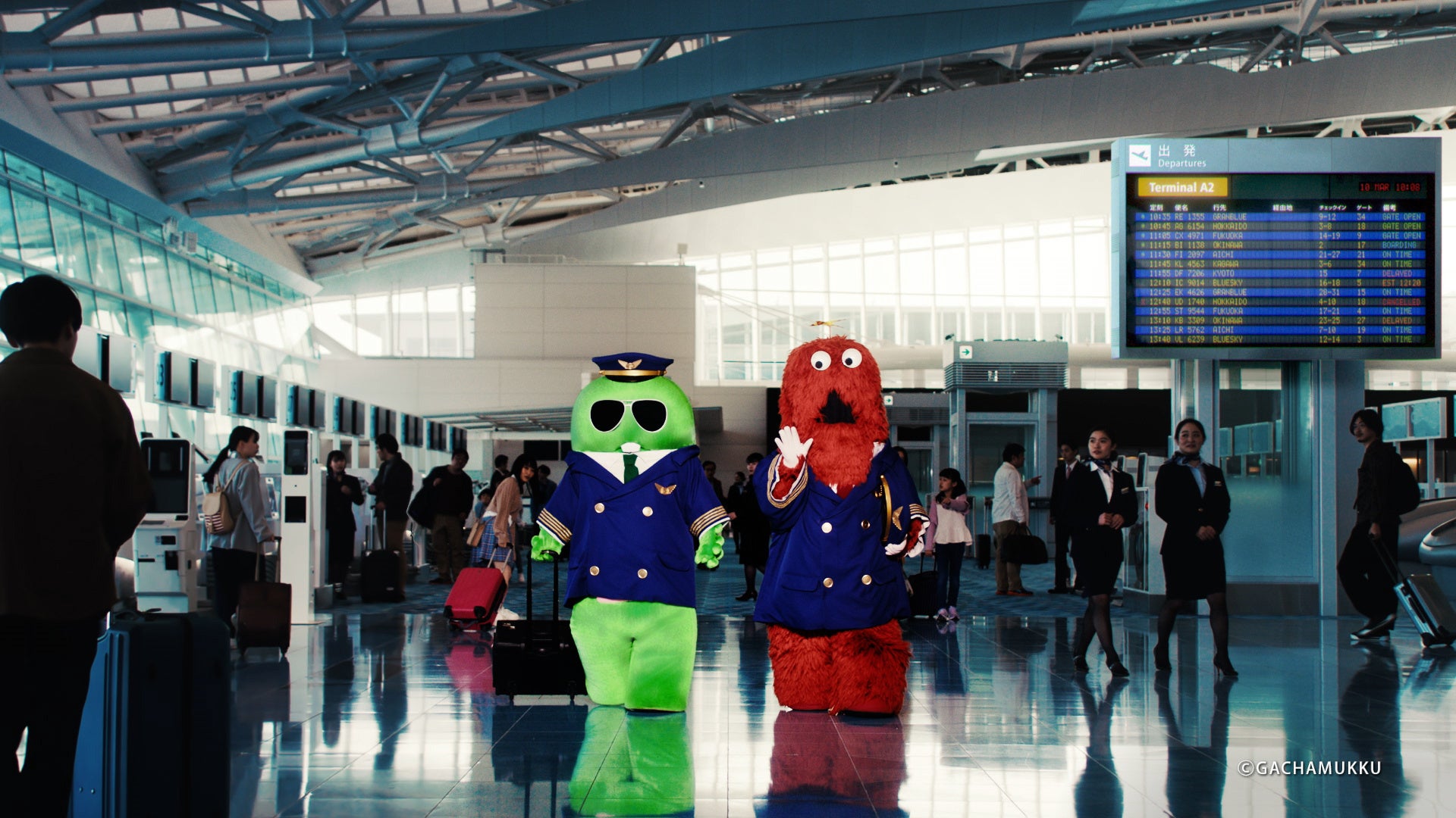 本CMは、『グランブルーファンタジー』のゲーム内にて3月10日(金) 0:00より開催される「グラブル運旅」を、パイロットの衣装に身を包んだガチャピン・ムックがコミカルに紹介する内容となっています。