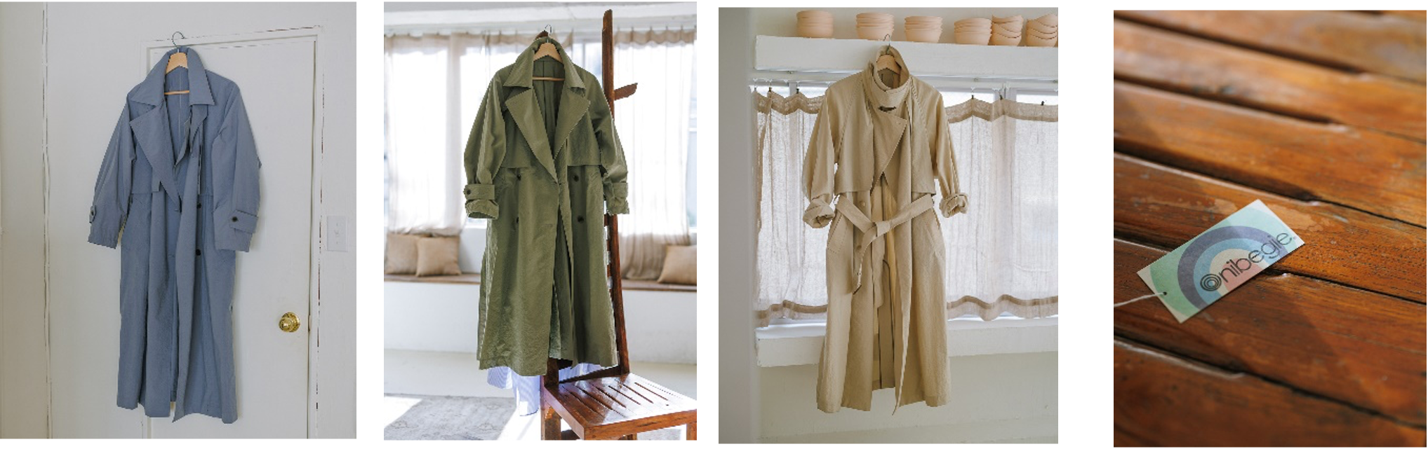 第一弾はハイブリッド染色素材「Onibegie®︎」を使用したトレンチコートを発売