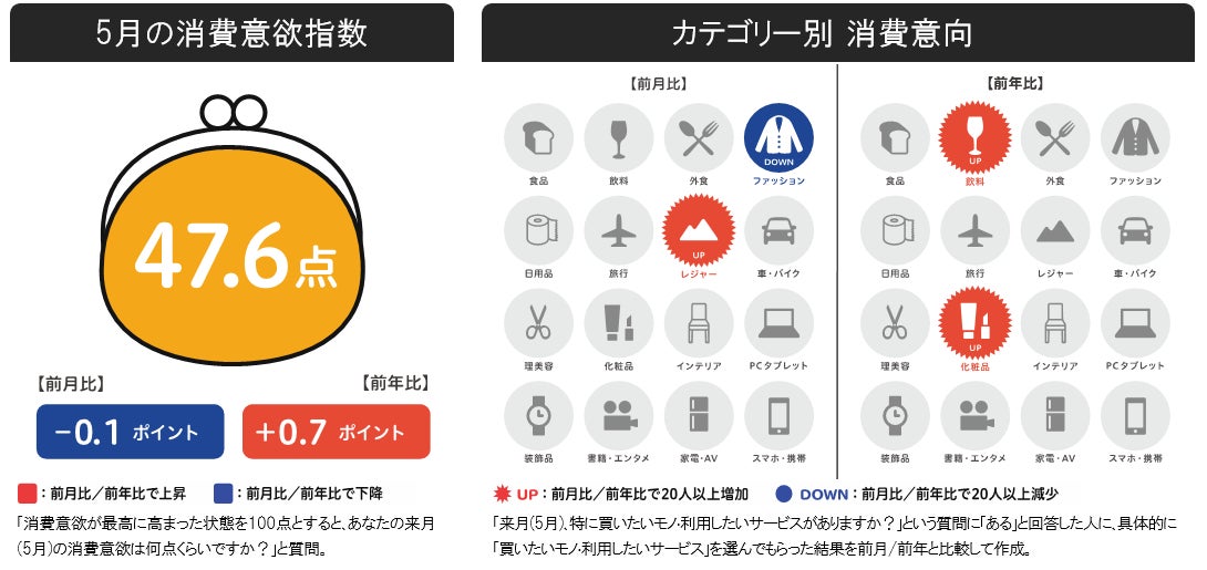 5月の消費意欲指数は、同月として過去5年間の最高値に。物価高の影響はみられるも、大型連休や旅行への意欲が向上