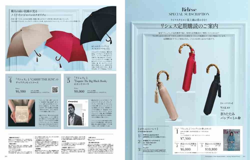 【今号限定】1938年創業の老舗洋傘工房「ワカオ」の折りたたみ傘と『リシェス』定期購読がセットになって数量限定で発売します。数に限りがありますのでお早めに。