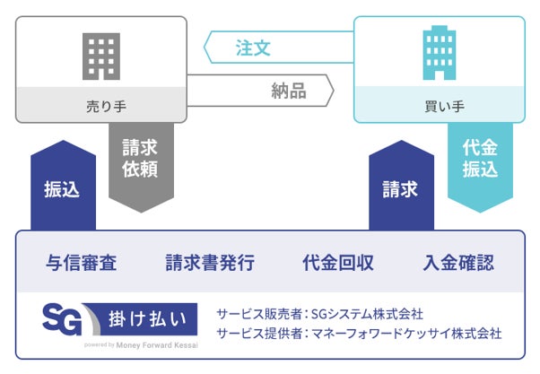 当社は、企業の与信審査から請求書発行、代金回収までの決済業務を一括して代行する企業間後払い決済サービス『マネーフォワード ケッサイ』を提供しています。今回の業務提携では『マネーフォワード ケッサイ』の仕組みを利用し、『SG掛け払い powered by Money Forward Kessai』をSGシステムおよびSGホールディングスグループのお客さまに対して展開します。これにより、商習慣上、「郵送での請求書送付が残っているため、リモートワークが難しい」などの課題を持つお客さまに対して、『請求・決済業務のデジタル化』を支援してまいります。