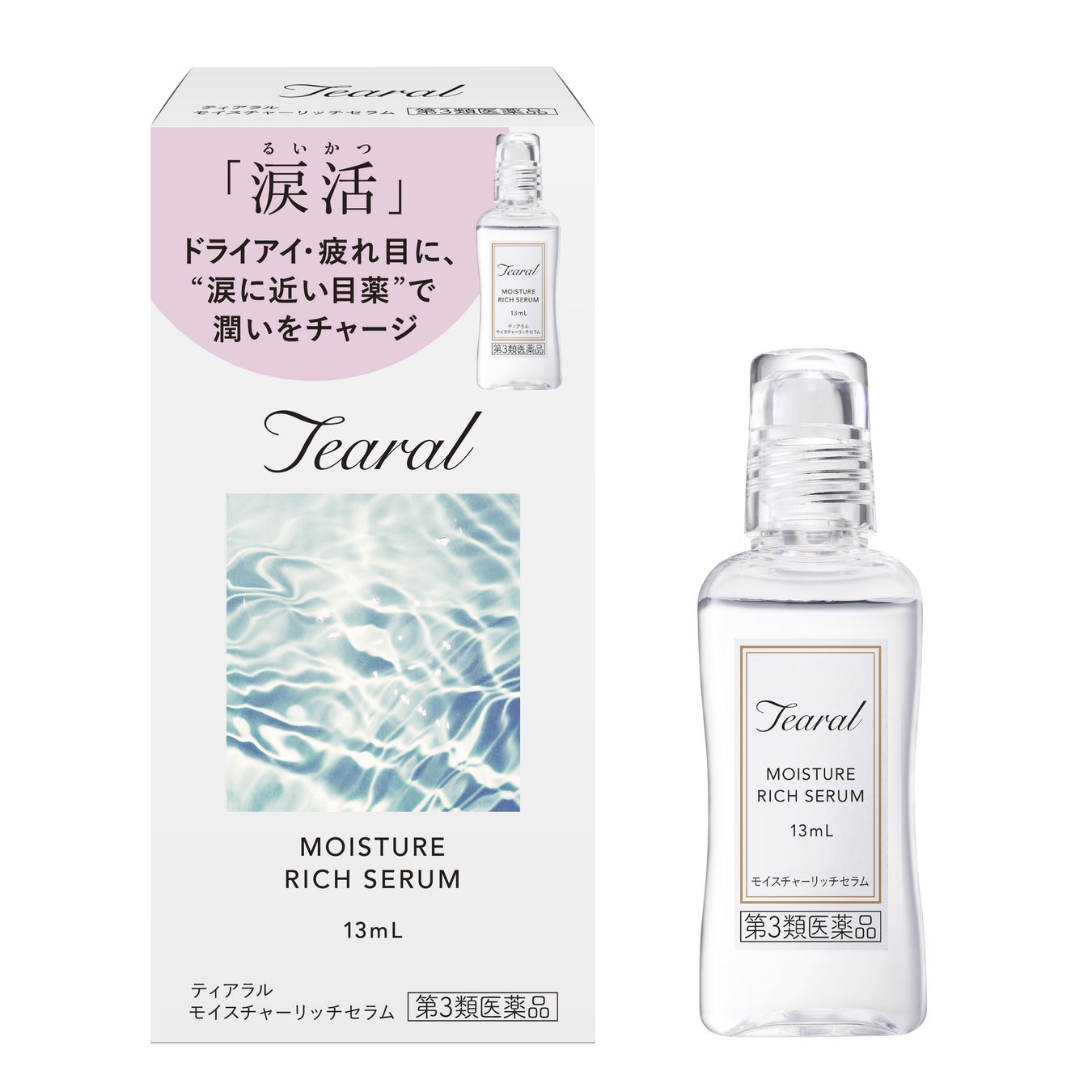 Tearal 「モイスチャーリッチセラム」は、 涙に近いナチュラルな処方を実現し、瞳にリッチなうるおいを届け、目の渇きや不快感を改善する人工涙液です。