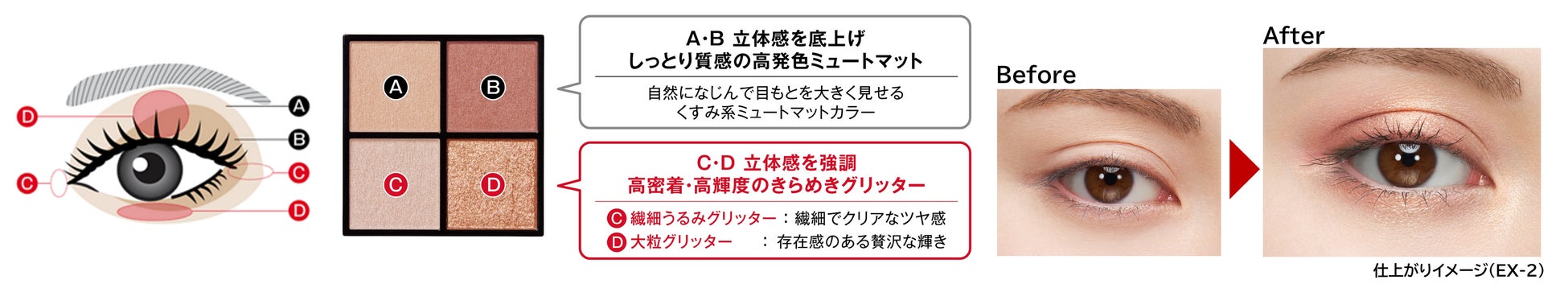 肌なじみの良い 低彩度のくすみ発色の和ニュアンスカラーが自然に目幅を拡張*
