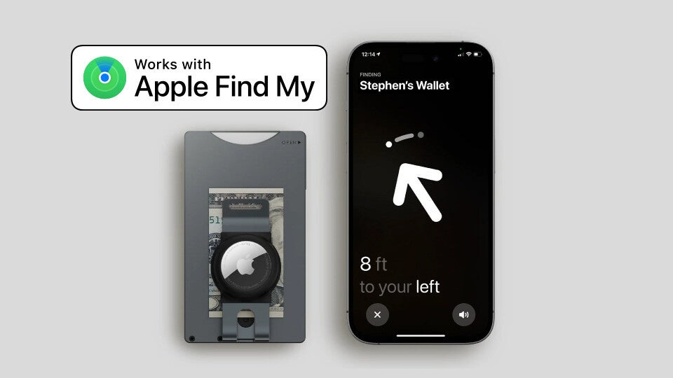 AirTagを装着すると「探す(Find My)」アプリを利用してShuffle Walletの場所を特定できるため、置き忘れ防止に役立ちます。※AirTag本体は付属しません