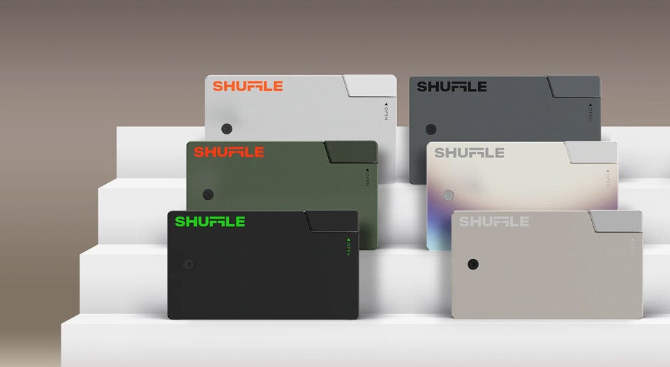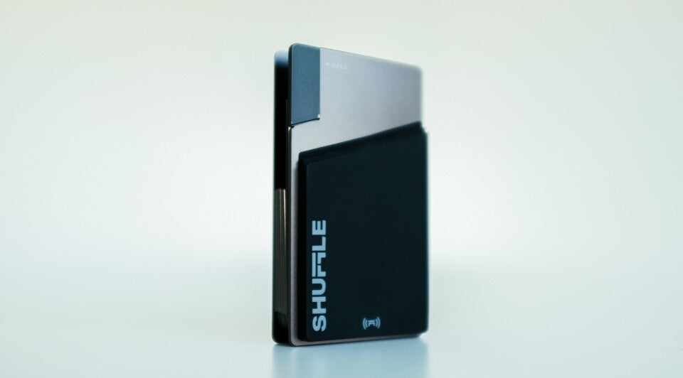 「Shuffle Wallet(シャッフルウォレット)」は親指でロックを押して振るだけで扇状に展開するミニマルウォレット。トランプのように広がり簡単にカードを取り出すことができるので、レジ前でもたつくこともありません。アルミニウムとチタンの2種類の素材で、全6色のラインナップを用意しています。またRFIDブロック機能が搭載されているため、カード情報のスキミングも防止します。