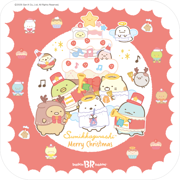 サンエックス株式会社(本社:東京都千代田区)は、B‐R サーティワン アイスクリーム株式会社(所在:東京都品川区)の「MAKE A SWEET CHRISTMAS(メイク ア スウィート クリスマス)」キャンペーンにて、アイスクリームケーキ「すみっコぐらし クリスマス パレット6」が発売されることをお知らせします。