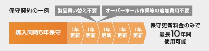 さらに、長期間安心してご利用いただけるよう、最長10年間の保守サービスをご用意しました。(注2)これにより、機器の長期使用が可能となり、入れ替えによるコストや手間をかけずに、長く安心してお使いいただけます。