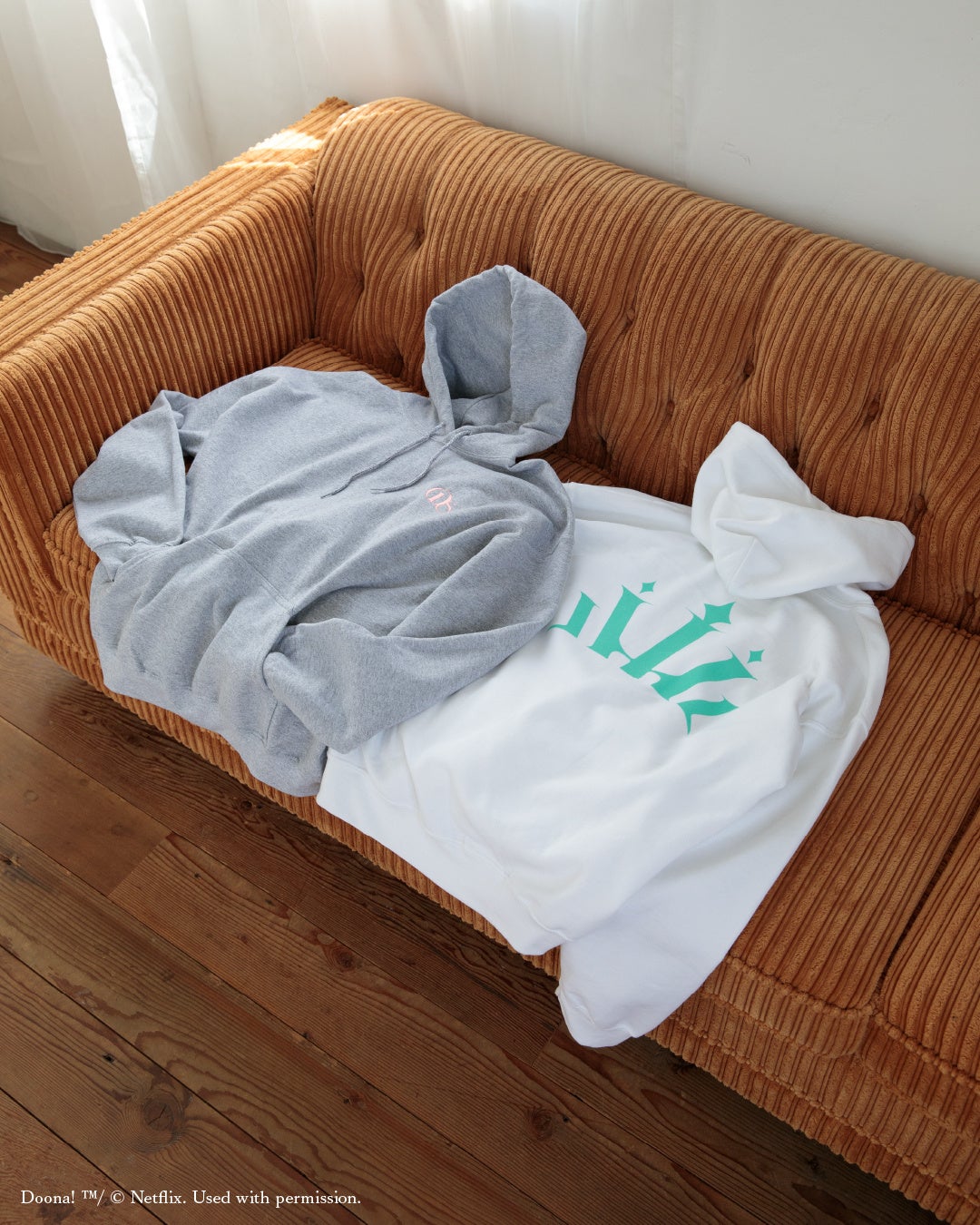 第1弾は主人公イ・ドゥナが所属していたアイドルグループ「ドリームスイート」に着目し、パーカーとキャップの2アイテムを展開。パーカーは、「ドリームスイート」のファンアイテムをイメージしました。主人公ドゥナとウォンジュンの出会いのきっかけとなった、印象深いシーンでのキーアイテムです。もう一方のキャップは「ドリームスイート」のライブグッズをイメージしています。
