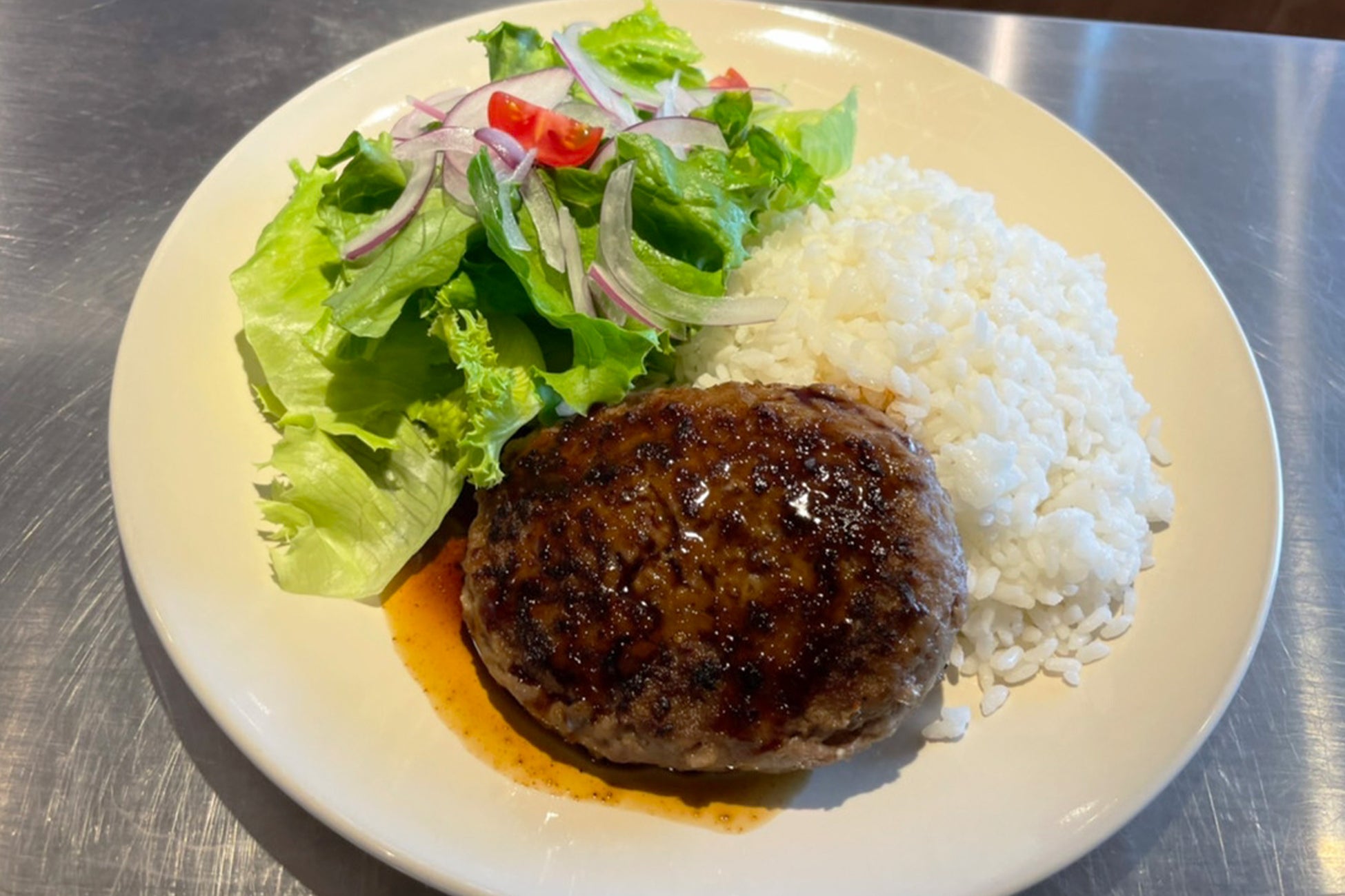 ・ライス・牛肉100%ハンバーグステーキ(醤油)・サラダ