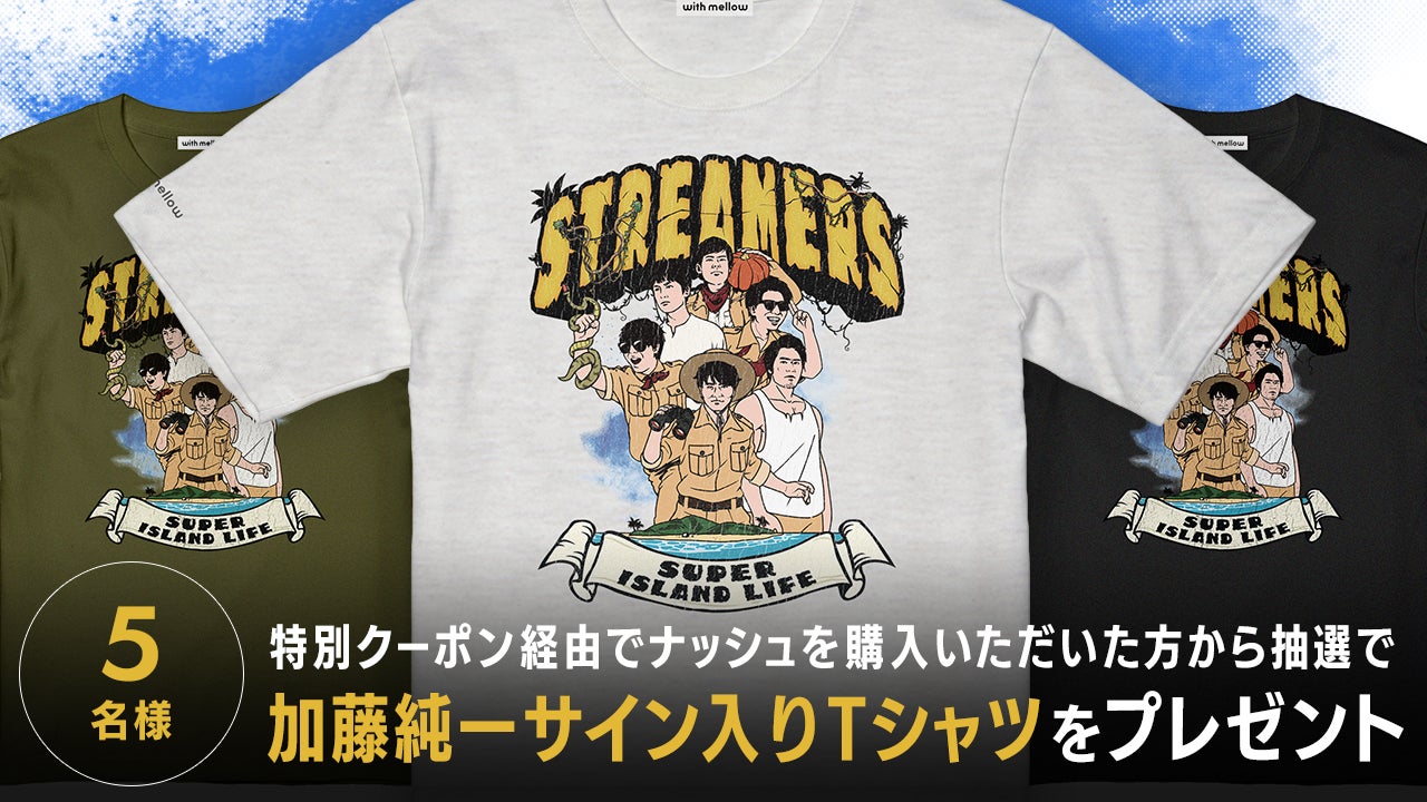 特設ページから新規購入いただいた方を対象に、抽選で5名様に加藤純一氏のサイン入りTシャツをプレゼントいたします。