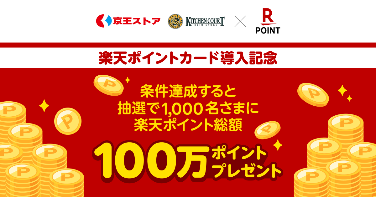 本導入を記念して、2026年2月4日(水)から3月31日(火)まで、「京王ストア 条件達成で抽選で1,000名様に楽天ポイントプレゼントキャンペーン」を実施します。