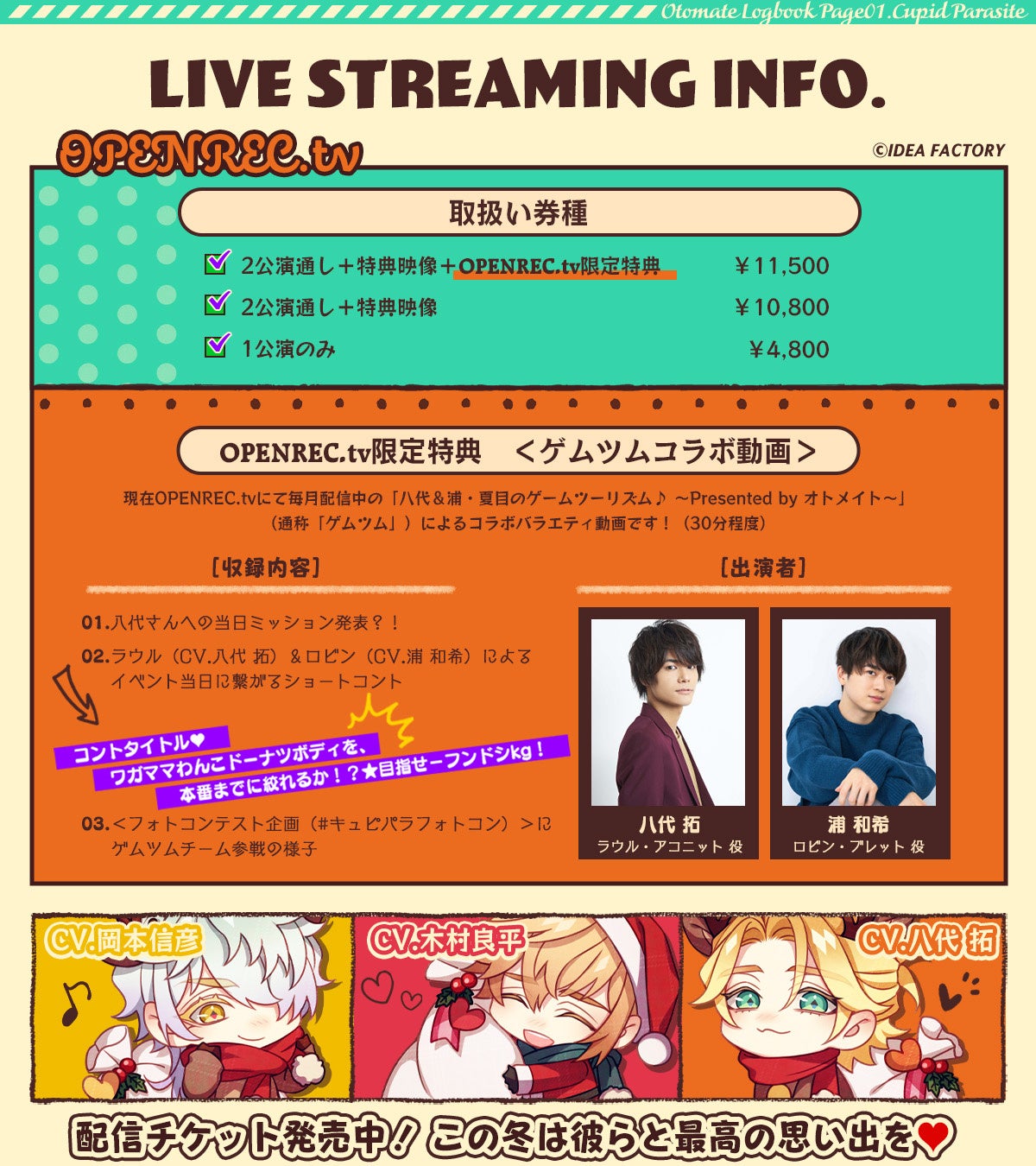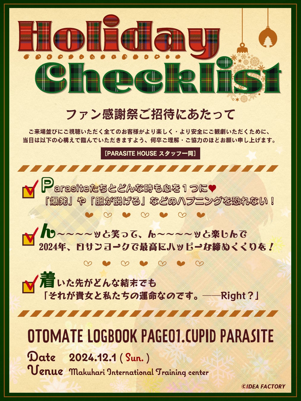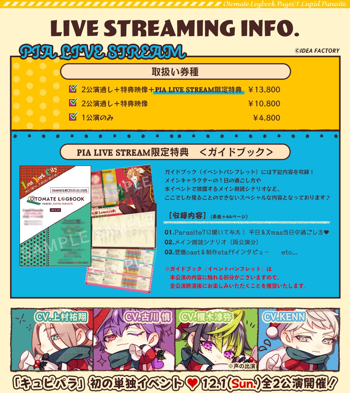 アイディアファクトリー株式会社(代表取締役社長:佐藤 嘉晃/所在地:東京都豊島区)の女性向けゲームブランド「オトメイト」は、「キューピット・パラサイト」単独イベントが今週末[12月1日(日)]に開催されることをお知らせいたします。