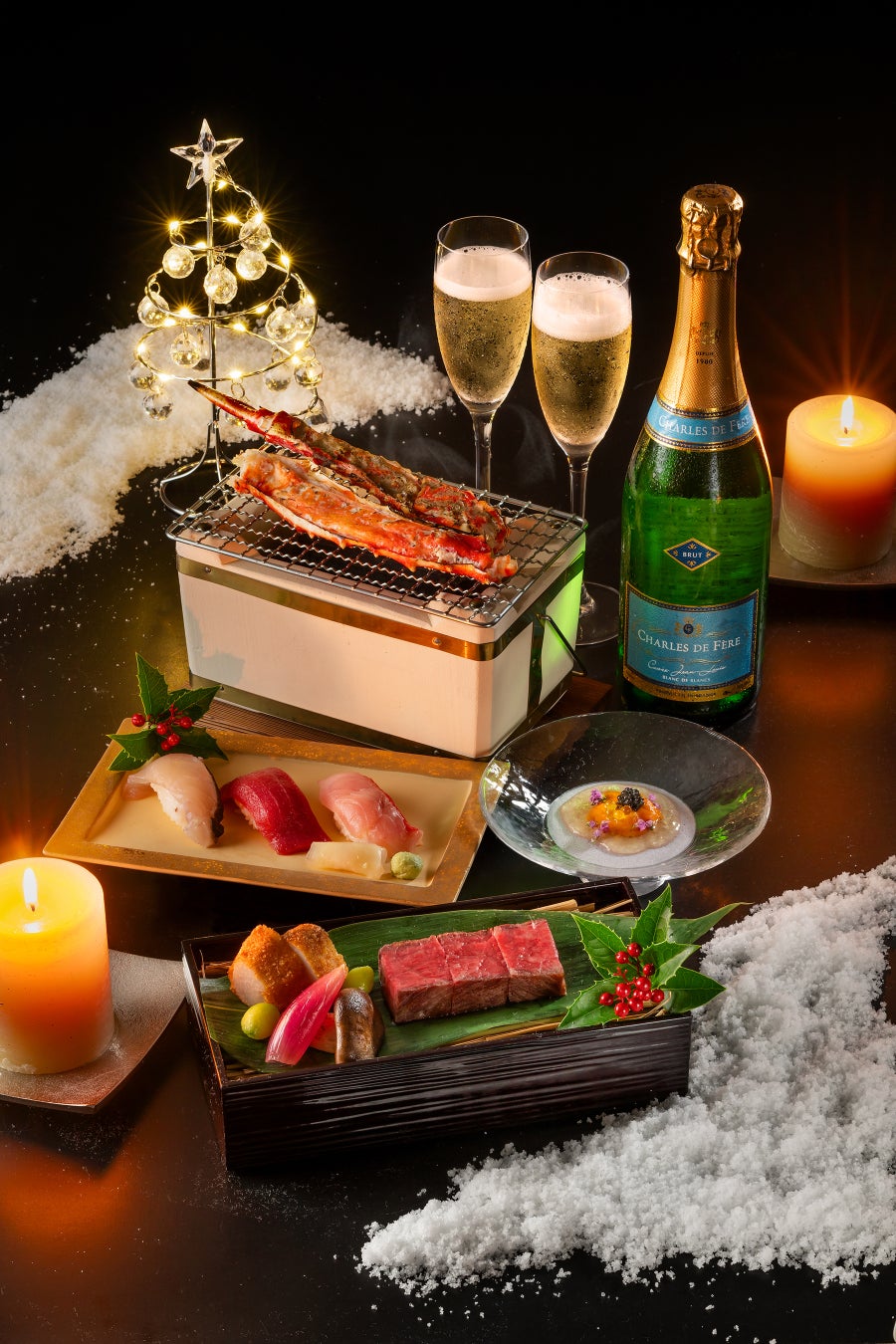 クリスマス期間中のレストランでは、ホテル最上階フロアからの夜景とともに聖夜にぴったりのフレンチフルコースや、焼き手のパフォーマンスも魅力的な鉄板焼コース、生演奏を聴きながら優雅なひとときをお過ごしいただけるダイニングレストランのコース料理、日本料理ならで和のメニューが楽しめるディナーコースなど、豊富なメニューからお好みのスタイルでお選びいただけます。