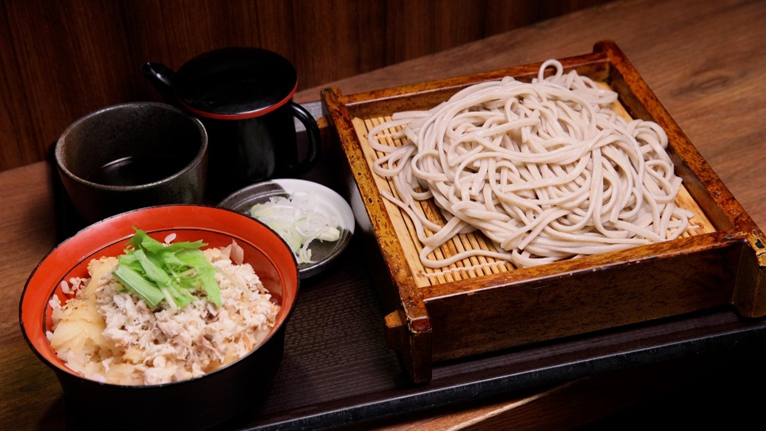 名コンビが作るそばは、茹でた生麺を氷水でしめ、再び温める事でコシのある喉越しの良い麺に。