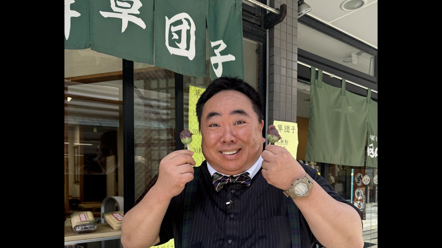 関東厄除け三大師として知られる西新井大師へ向かう参道であちらこちらから草団子が!?グイグイと草団子を勧められ戸惑いを隠せない塚地武雅(ドランクドラゴン)。