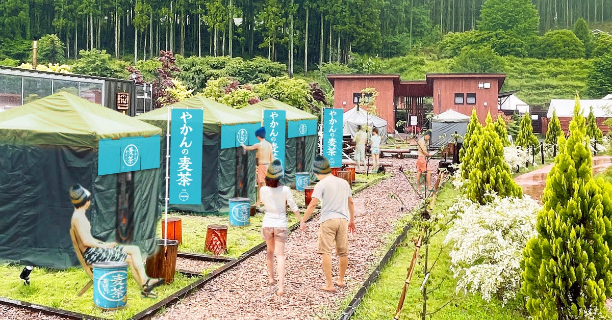 ひと汗をうるおす「やかんの麦茶」が、人気アウトドア施設ノーラ名栗と初コラボ 期間限定!麦茶とサウナの最強タッグで最高の“ととのい”体験 「やかんの麦茶サウナ」を7月23日(土)から9日間開催!
