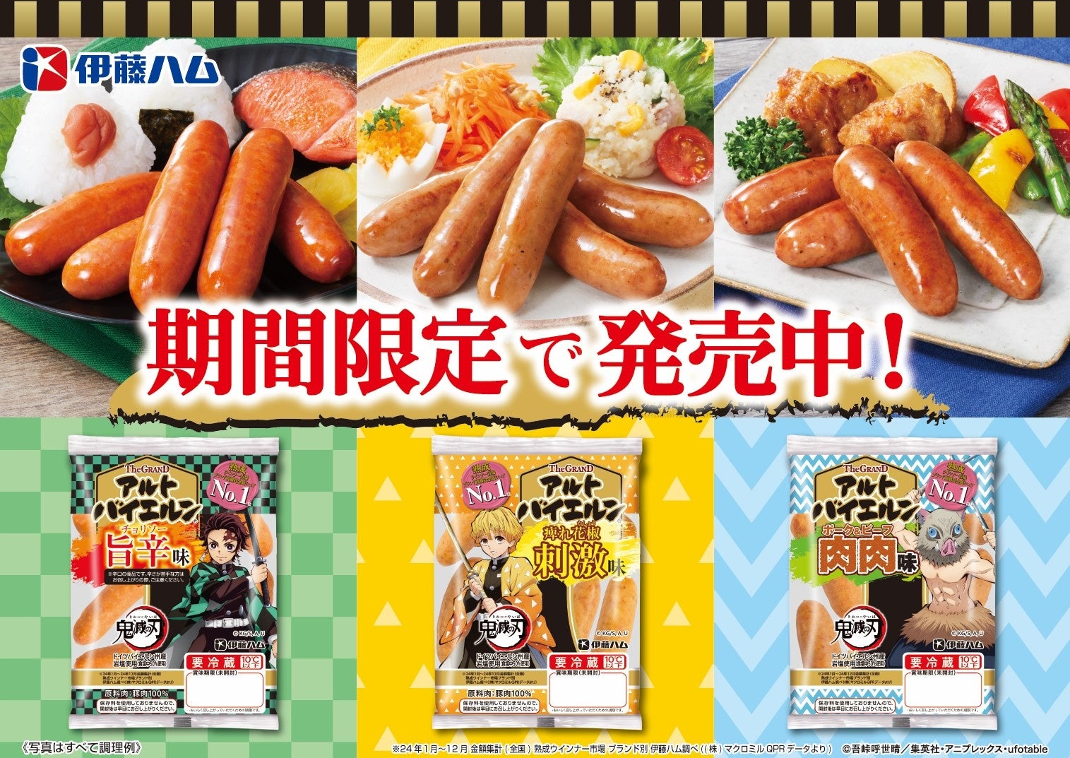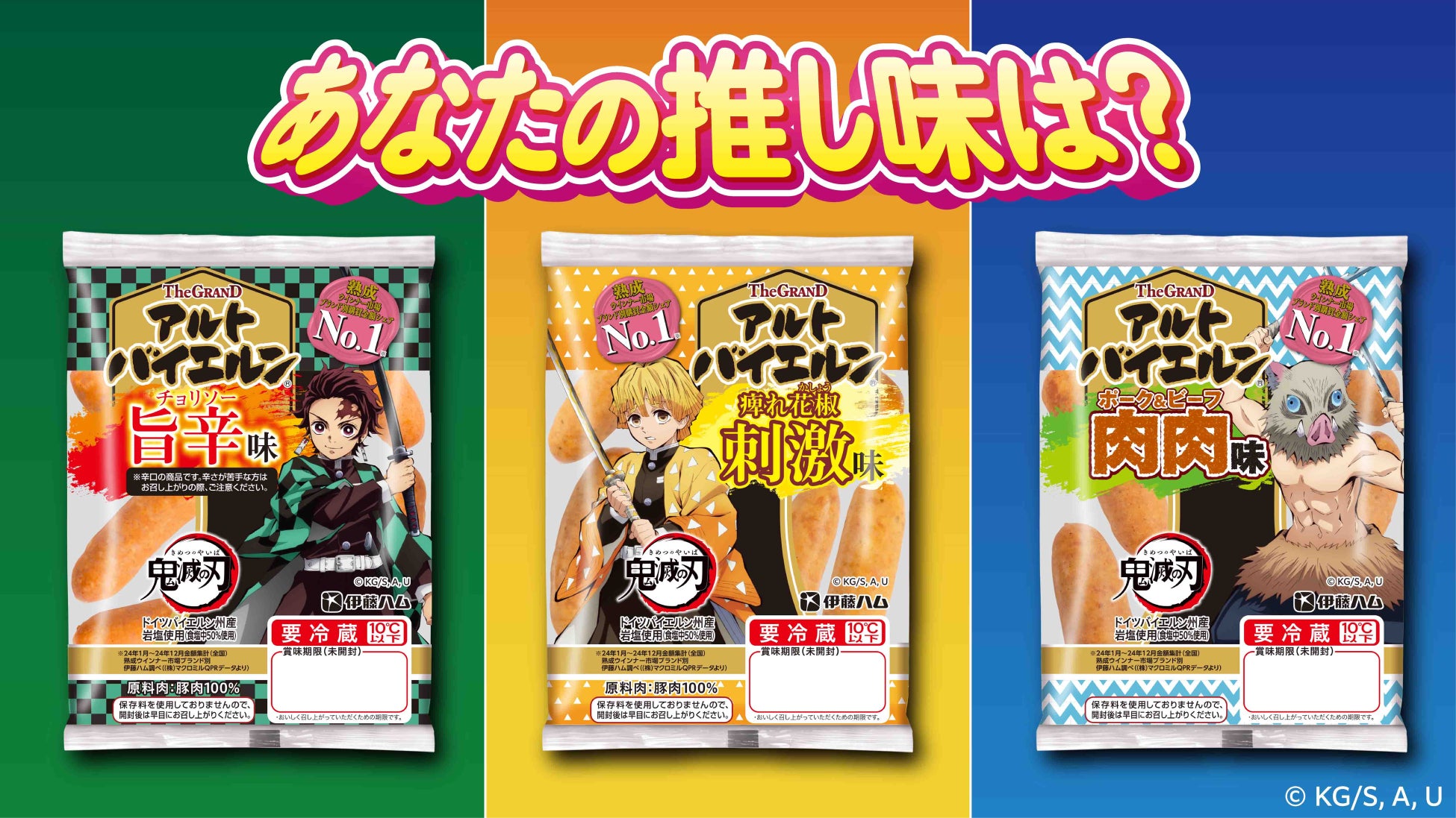 伊藤ハム株式会社(代表取締役社長:伊藤功一)は、2025年6月1日から期間限定で発売している「鬼滅の刃」の人気キャラクターをイメージした「The GRAND アルトバイエルン」の新味3品において「肉のうまさに全集中!推し味投票」を7月2日より実施します。