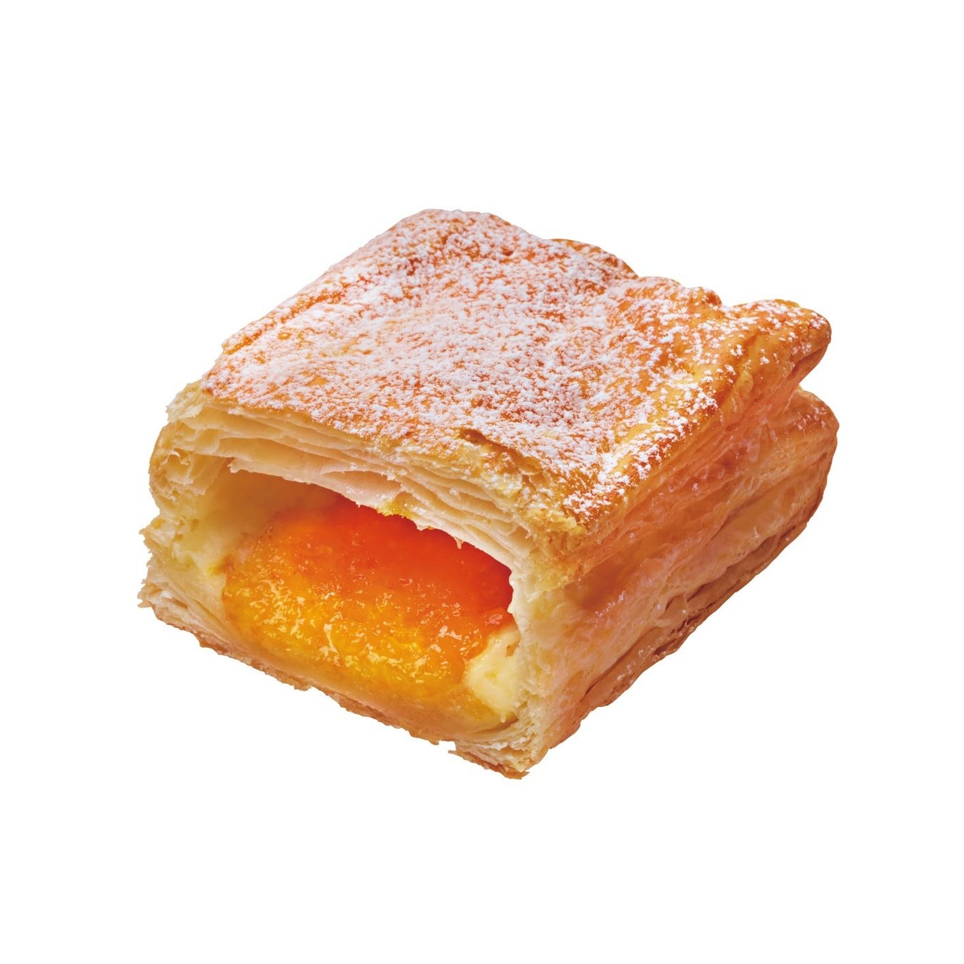 レアチーズ風味のクリームと、マンゴーソースを合わせ、サクサクのパイ生地で包んで焼き上げ、シュガーで仕上げました。