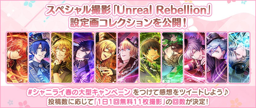 また、シャニライ春の大型キャンペーン2023を記念した撮影「Unreal Rebellion」は、ピックアップ撮影やステップアップ撮影などの形式で配信を予定しています。