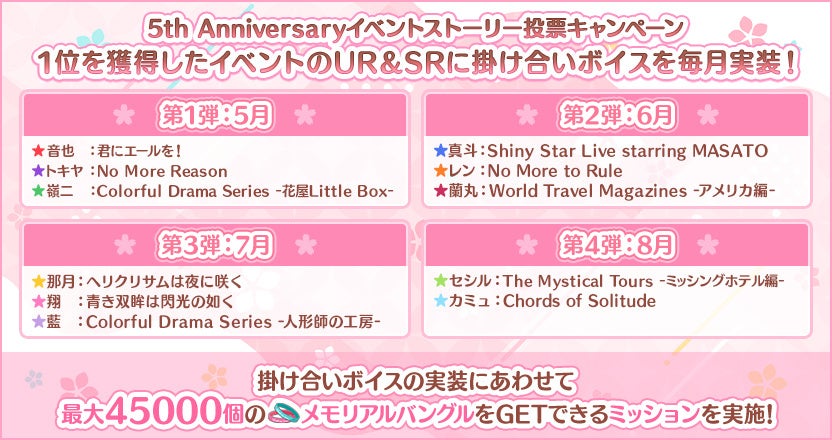 「うたの☆プリンスさまっ♪ Shining Live 5th Anniversary」特設サイトにて開催した第4回イベントストーリー投票キャンペーンにて、