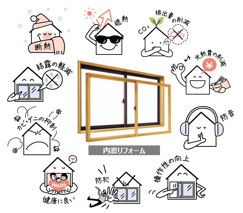 このように「遮熱」「断熱」「光熱費削減」「CO₂排出量削減」「結露軽減」「カビ・ダニ抑制」「健康維持」、さらに「操作性向上(外窓交換の場合)」「見た目の一新」「防音・防犯(内窓の場合)」と、実に“1窓10役”な窓。窓リフォームをすれば住まいの不満がまるっと解決します!様々な暑さ・寒さ対策グッズの使用を減らすことができれば、室内の見た目がすっきりし、住環境の美化にもつながります。壁を壊さずに済む窓リフォームなら引っ越しする必要もなく、作業が終了。快適な住環境の実現とともに、健康や経済面、さらには住空間の美しさにも貢献する有効な手段といえます。